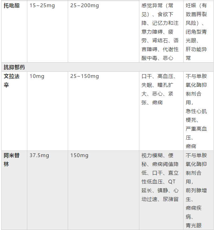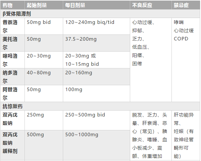 • 临床常用的β受体阻断剂、托吡酯、丙戊酸盐、左乙拉西坦、阿米替林等药在儿童中的疗效尚未明确。